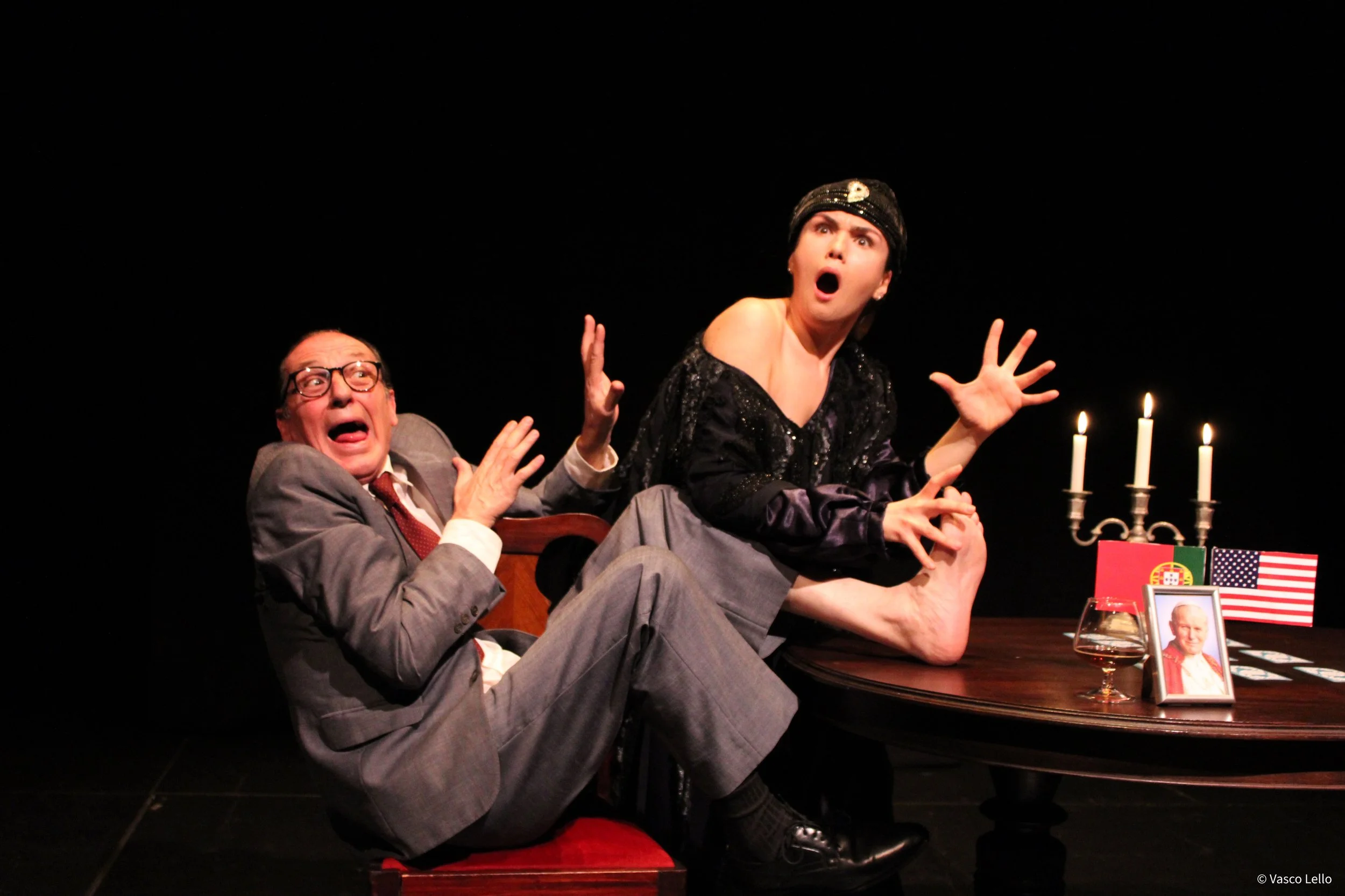 No fim do espectáculo, depois de uma oraçãoo partilhada com o público, é milagrosamente convertido em Santo Padroeiro dos Corruptos.